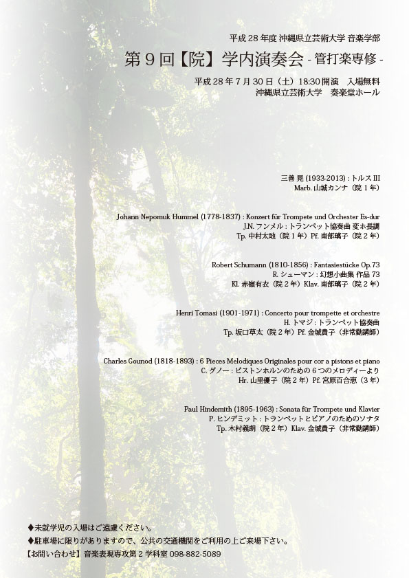 沖縄県立芸術大学 第9回学内演奏会 -管打楽専修- 2016年07月30日(土)