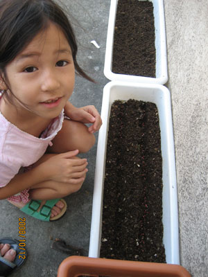 ところが、その土壌に追肥すること(有機堆肥を混ぜる)によって実験栽培では、成長を大きく助ける働きがあり、その結果、野菜が大きく稔るという成長が確認でき、有機堆肥によってプランター栽培が可能であることの証明ができました。