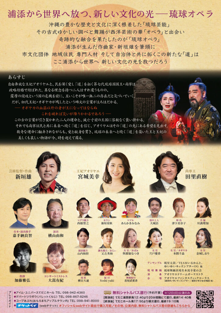 今回の公演は、浦添市の市制施行55周年記念事業にも位置付けられており、浦添市からの応援が「アオリヤエ」を更なる浦添市の素晴らしい歴史・文化コンテンツの「至宝」として磨き上げているものと期待できます。