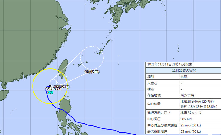 令和7年 台風第26号に関する情報 2025年11月11日21時45分 気象庁発表